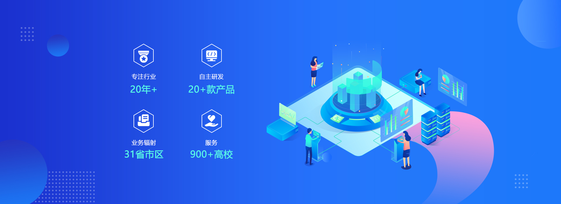 自主研發(fā)了教學微服務(wù)平臺、研究生綜合管理平臺、職業(yè)院校質(zhì)量管理信息平臺、本科教學質(zhì)量保障平臺、智慧校園信息平臺、一站式學生工作數(shù)字化平臺、智慧后勤綜合管理平臺等20多款產(chǎn)品
